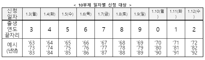 동시접속자 분산을 위해 대표자 주민등록번호 출생연도 끝자리 기준으로 ’22년 1월 12일까지 10부제* 운영하고 있습니다.
