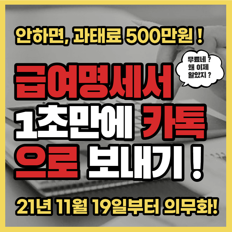 2021년 11월 근로기준법 개정으로 급여명세서를 직원에게 보내는 것이 의무화되었습니다. 심지어 이를 수행하지 않으면, 과태료 500만 원이 나오게 됩니다. 이런 부분 말고도 신경 써야 할게 많은데, 골치가 아프네요. 그래서 직업 등록 관리부터 간단히 급여명세서를 카카오톡으로 보낼 수 있는 방법에 대해서 알아보도록 하겠습니다.