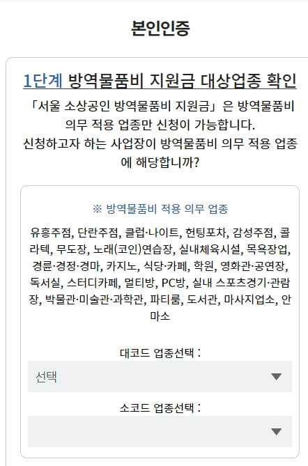 서울만 지원하는 것이 아닙니다. 사업장 소재지에 시·군·구 공식 홈페이지를 통해서 방역물품 지원 대상 여부 조회 및 신청이 가능합니다.