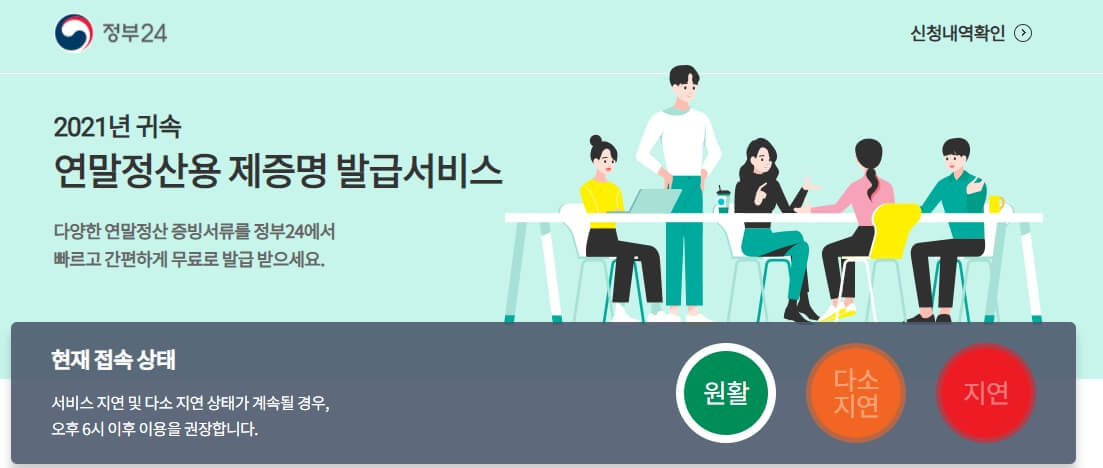 2021년 귀속 연말정산용 제증명 발급서비스