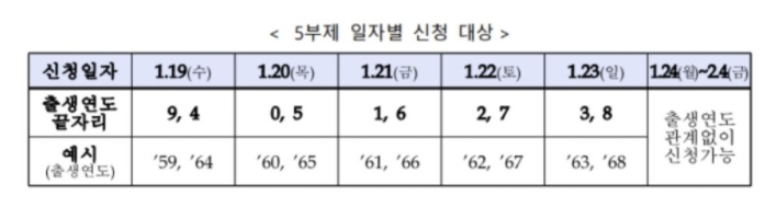우선 신청 기간은 1월 19일부터 온라인 / 오프라인으로 모두 신청이 가능합니다. 해당 지급 일정도 5부제 일자별로 신청 대상을 구분하게 됩니다.
