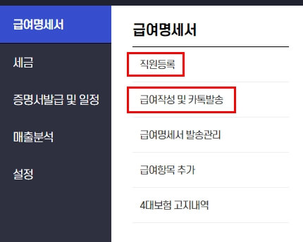 이용 방법은 상당히 간단합니다. 카카오톡으로 로그인하고, 직원 등록 그리고 급여 사항에 대해서 입력하고 발송하기만 하면 됩니다. 물론 그전에 미리 준비해야 하는 사항이 있습니다.